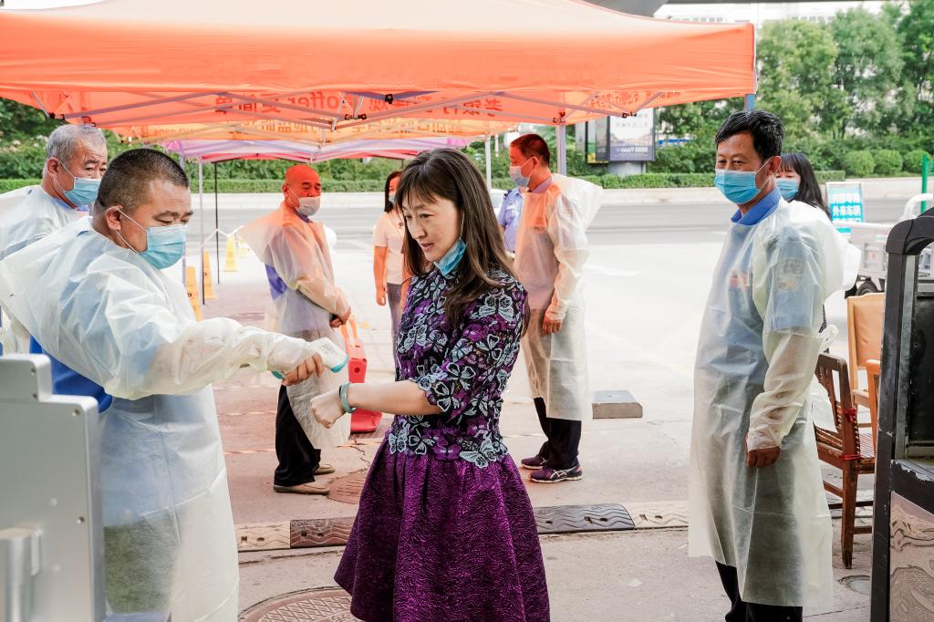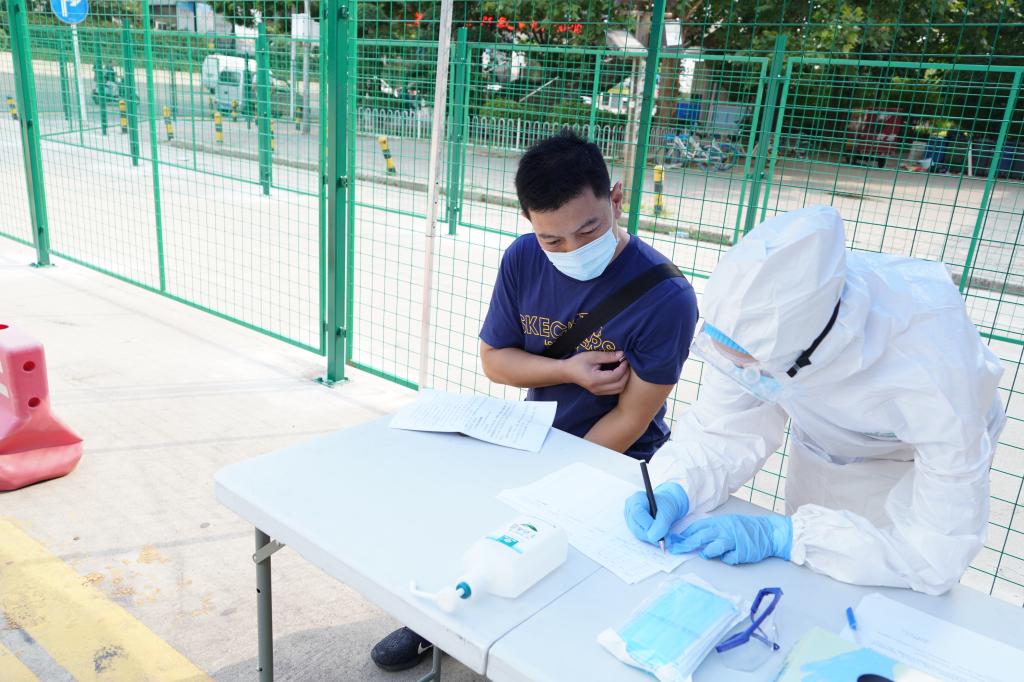 测温异常或非健康绿码教职工到校北门体温复测点做进一步检测登记