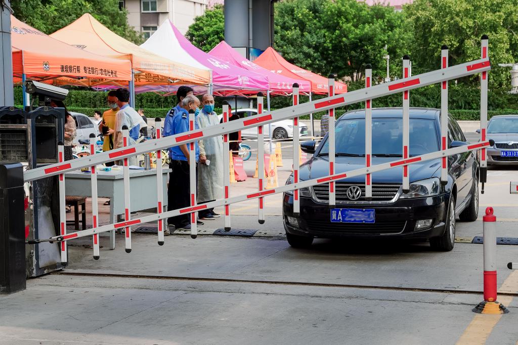 驾驶车辆人员需扫码、出示健康绿码、测温后依次进入校园