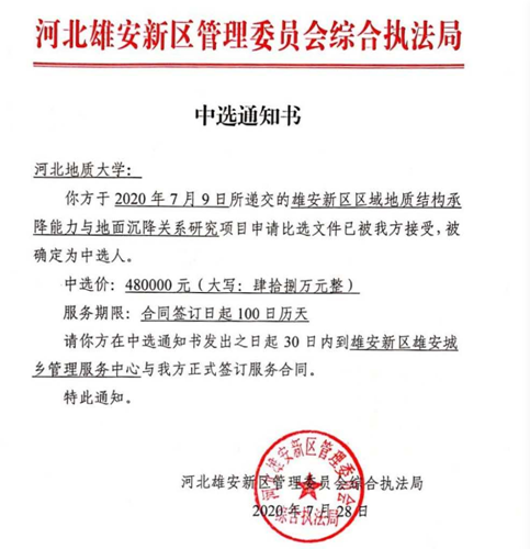 根据雄安新区建设要求和省领导对雄安新区地面沉降综合防治工作的批示精神,河北省雄安新区管理委员会综合执法局开展雄安新区区域地质结构承降能力与地面沉降关系的研究工作,以比选的方式择优选择研究单位。