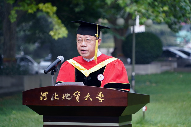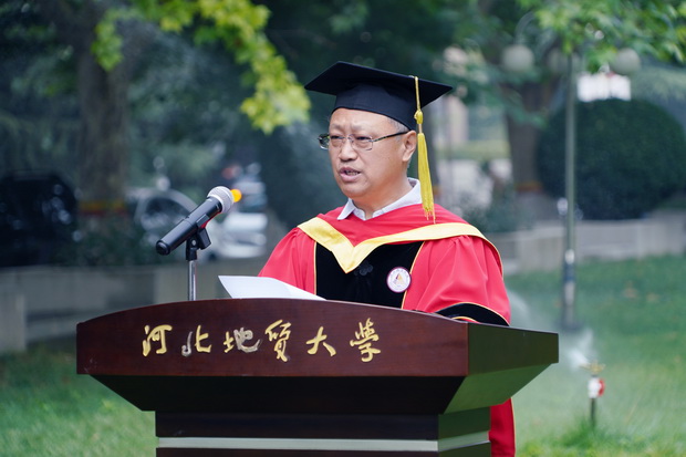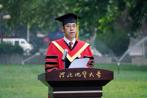 本科毕业生代表、外国语教学部杨曼琳同学回忆了四年来在学校生活的点点滴滴:“感恩母校‘仰山之高、慕水之善’的谆谆教诲,让我们成长为胸怀宽广、抱负远大的新时代大学生;感恩老师,鞠躬尽瘁、无私奉献,让莘莘学子遨游于知识的海洋;感恩即将离别的朋友,我们彼此分享欢乐,共渡难关。”她说,特殊时期的毕业季,因为有遗憾,所以更加让人珍惜。无论未来身在何处,都会传承地大精神,发扬地质人脚踏实地的作风,用奋斗谱写青春,将小我融入大我,在各自的领域发光发热,如校歌所唱,担当中华复兴之大任。