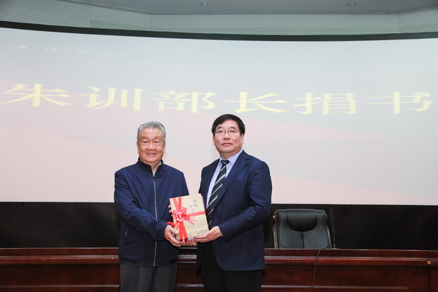 朱训老先生为学校捐赠数千册图书并成立“朱训书屋”