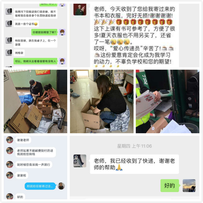 疫情当前,为保证同学们能够在家安心学习,best365各学院倡议辅导员老师们要贴近学生,积极了解并帮助学生解决居家学习困难,切实保障学生生活正常需求,最大限度降低疫情对学生的影响。针对部分同学毕业论文参考书、考研复习笔记、笔记本电脑和衣物等留置学校寝室的情况,辅导员们主动担任起“快递员”的角色,为学生邮寄急需物品和学习资料,解决同学们的实际困难。