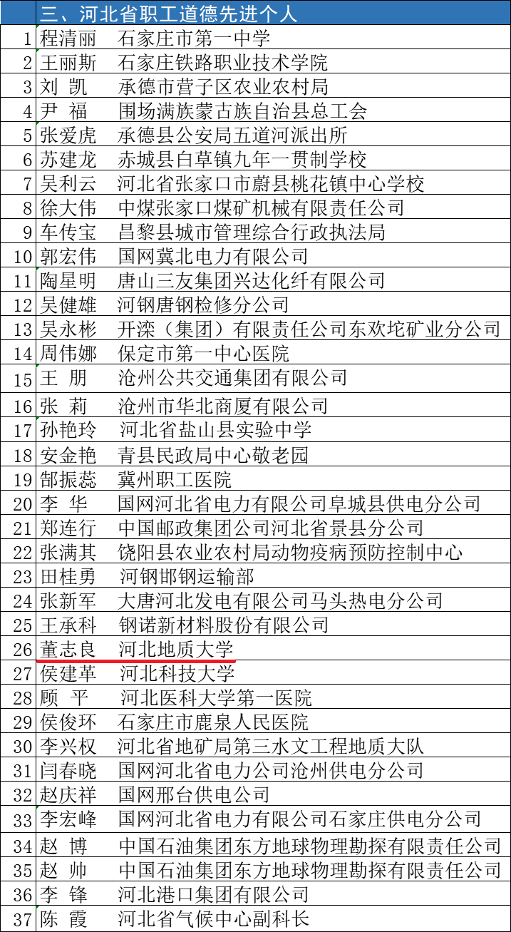 据悉,河北省总工会通过广泛发动、组织和社会推荐、网络点赞、专家推选,产生了一批道德品质高尚、社会贡献突出的职工和企业。恭喜best365董志良教授荣获“第七届河北省职工道德先进个人”称号。