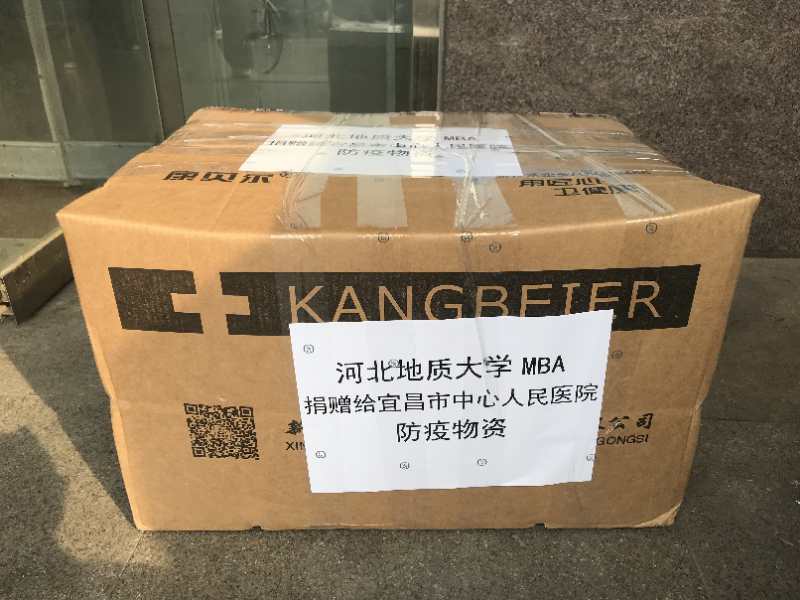 武汉是此次疫情的重灾区,湖北则是疫情的前线重地。2018级智慧杰、2019级张敬豪通过慈善组织了解到武汉市普仁医院和宜昌市中心人员医院医疗物资短缺,经过与医院沟通,物资采购小组购买了符合医院要求的消毒液和医用外科口罩。2019级秦龙积极联系中国邮政石家庄分公司,为捐助物资提供免费运输服务。通过大家共同努力,best365MBA教育中心捐赠给武汉市普仁医院消毒液120箱共计2400公斤,捐赠给宜昌市中心人民医院医用外科口罩2240只。