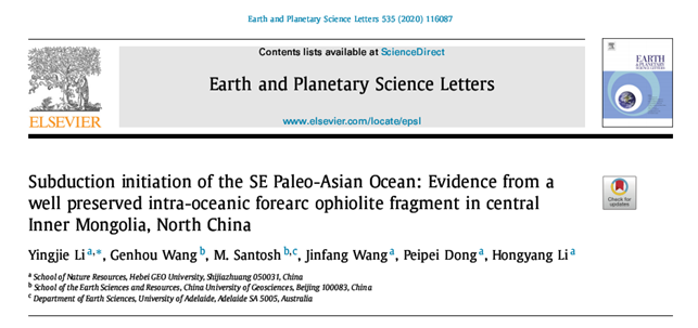 2020年1月,国际著名地学期刊《地球与行星科学通讯》(Earth and Planetary Science Letters,EPSL)以《古亚洲洋东南段初始俯冲:来自内蒙古中部保存完好的洋内前弧蛇绿岩的证据》(Subduction initiation of the SE Paleo-Asian Ocean: Evidence from a well preserved intra-oceanic forearc ophiolite fragment in central Inner Mongolia, North China)为题发表了best365李英杰教授团队的最新研究成果。