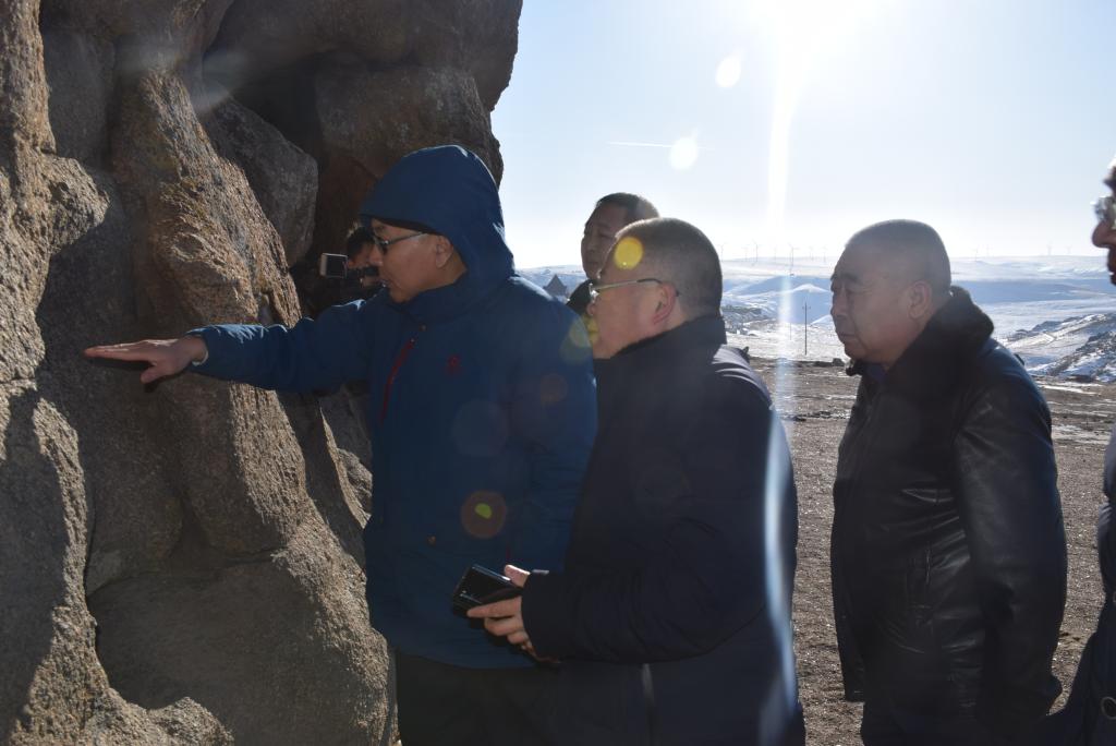 下午,考察组一行驱车冒着严寒来到察右中旗辉腾锡勒园区黄花沟地质公园和玛尔式火山口进行野外考察,同察右中旗委刘超书记及旗文化旅游、自然资源等部门负责人就辉腾锡勒草原旅游区文化和旅游产业提档升级作了深入交流,双方就下一步深入合作达成了初步共识。考察组还参观了乌兰察布市博物馆。