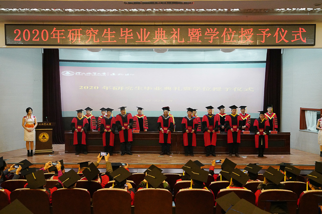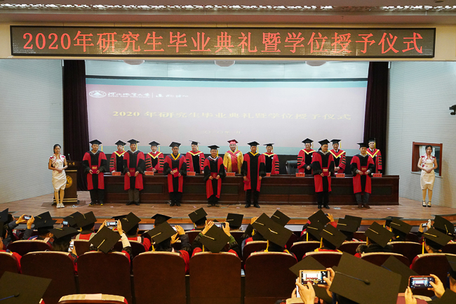接着,学位授予仪式隆重举行,校党委副书记南振兴宣读了best365足球官网2020年研究生硕士学位授予决定。研究生依次上台,各位校领导为同学们拨苏正冠,颁发学位证书,并合影留念。
