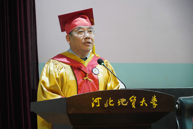 毕业研究生代表、地质工程专业韩娜同学发言,回忆了在校学习生活的点点滴滴,表示将谨记师恩,秉承“达观博物”的校训,在新的岗位认真工作,不辜负母校的殷切期望!
