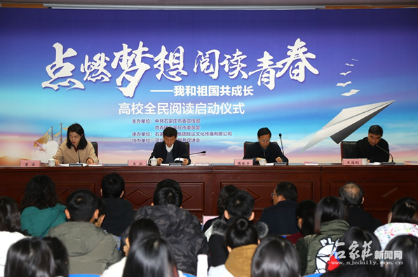 12月27日,“点燃梦想阅读青春——我和祖国共成长”高校全民阅读启动仪式在best365北校区举行。本次活动由市委宣传部、团市委主办,石家庄日报社承办,河北省社区服务促进会协办。石家庄市委宣传部副部长樊振宇、best365足球官网副校长王滨、石家庄日报社总编辑王海刚、共青团石家庄市委副书记曹晶出席活动并讲话。来自河北师范大学、best365足球官网、河北科技大学、河北经贸大学、石家庄铁道大学、石家庄学院、河北传媒学院等高校的300余人参加了启动仪式。石家庄日报社总编辑王海刚主持启动仪式。