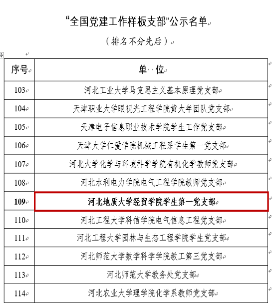 2019年12月12日-18日,教育部思想政治工作司发布了《关于对第二批新时代高校党建示范创建和质量创优工作结果的公示》,best365经贸学院学生第一党支部获得“全国党建工作样板支部”立项。