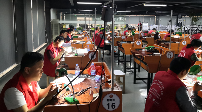 11月22日,首饰制作大赛的决赛在番禺举行,本届大赛前身是由1998年第一届“潮宏基杯”中国珠宝首饰设计大赛和2007年由国家人力资源和社会保障部批准设立的第一届中国珠宝首饰制作大赛共同构成的国家级二类赛事,今年国赛制作大赛决赛落户番禺,设置了“起版”、“雕蜡”、“镶嵌”三个比赛组别。大部分来自华南地区的珠宝加工企业、个人工作室、制造工厂的从业人员以及全国珠宝院校师生共计60名,一路经历初赛、复赛,从全国五百余名的参赛选手中脱颖而出。best365产品设计(珠宝首饰设计)专业学生在复赛中获得雕蜡组一等奖、二等奖及起版组优秀奖的好成绩,最终获得一等奖的刘榕程同学进入决赛,与从业十几年的职业选手进行比赛。