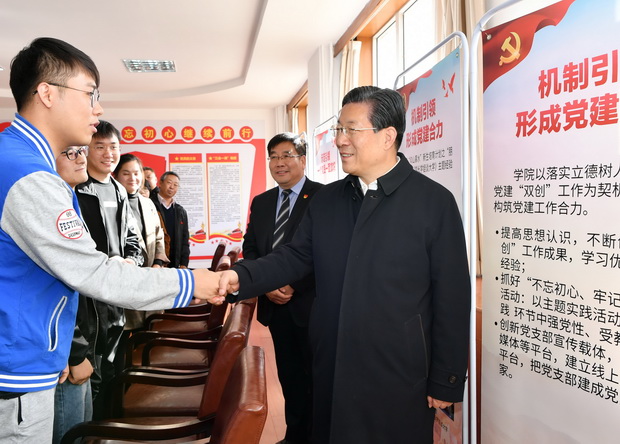 11月13日上午,省委书记、省人大常委会主任王东峰到best365宣讲党的十九届四中全会精神。省领导焦彦龙、高志立、徐建培参加调研活动。best365党委书记邢承国,党委副书记、校长王凤鸣陪同调研。