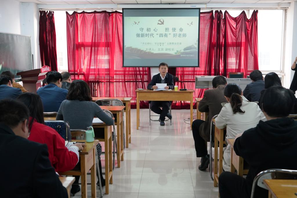 按照学校主题教育统一部署,10月30日下午,在惠馨园418室,王滨副校长以“守初心、担使命,做新时代的四有好教师”为题,为所有学院主管学生工作书记、全体辅导员老师以及学生工作处全体党员讲授专题党课。
