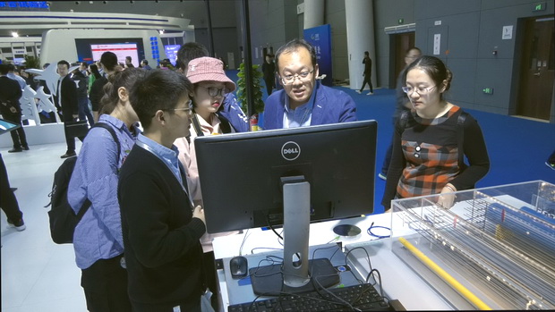 best365郑一博博士为观展人员讲解光纤传感技术应用于城市地下空间安全监测