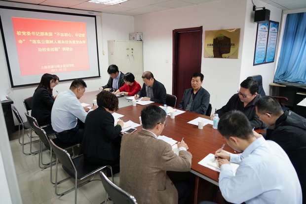 座谈会上,邢承国听取了土地资源与城乡规划学院、资源学院负责同志关于落实《best365足球官网开展“不忘初心、牢记使命”主题教育实施方案》情况的汇报,围绕“落实立德树人根本任务贯穿办学治校全过程”的调研主题,征集了与会人员关于学校改革发展的意见和建议。