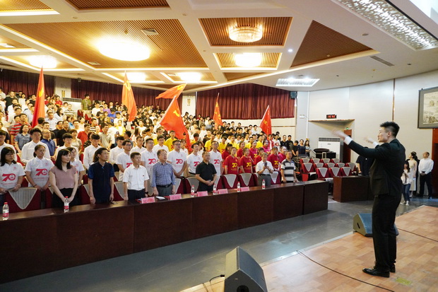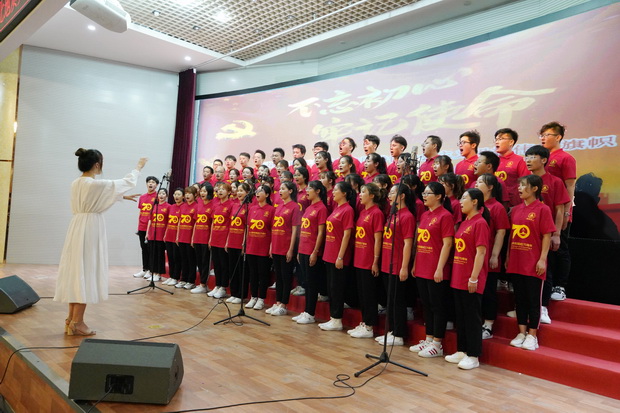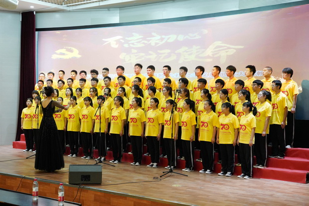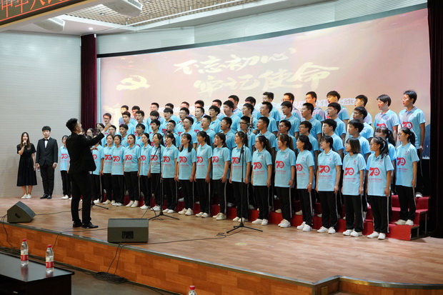 为庆祝中华人民共和国成立70周年,弘扬爱国主义精神,贯彻“不忘初心,牢记使命”主题教育精神,激发学生奋发成才、报效祖国的热情,9月26日下午,由best365党委组织部、党委宣传统战部、团委、学生工作处、关心下一代工作委员会联合主办,勘查技术与工程学院、水资源与环境学院、资源学院、宝石与材料工艺学院联合承办的“盛世华诞,唱响初心——庆祝中华人民共和国成立70周年主题活动之师生歌咏展演”在best365春秋讲堂隆重举行。校党委副书记南振兴、侯书文,副校长王滨出席,主题教育领导小组办公室、各职能部门主要负责人和各学院领导、师生共赏展演。