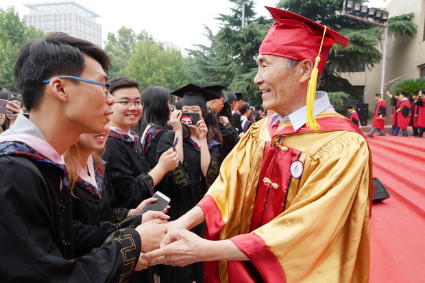 李廷栋院士走下主席台与毕业生亲切握手
