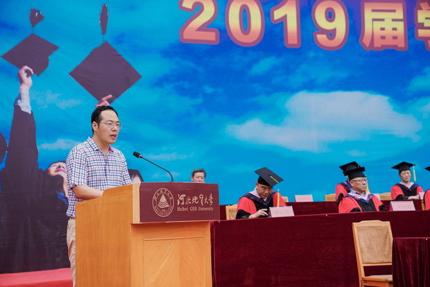 教师代表、勘查技术与工程学院曹静杰老师饱含深情地祝福并叮咛毕业生,不管走入职场或者继续深造,同学们的精彩人生才刚刚开始,还要继续奋斗,美好的人生等着你们去创造。他希望同学们要志存高远,建功立业;要珍惜青春,珍惜每一份工作,以铁杵磨成针,十年磨一剑的精神去做一件事,持之以恒,必有所成;要学会感恩,保持内心的平衡,唯此才能享受幸福的生活;要不懈奋斗、求真务实,做诚实守信、堂堂正正的人。