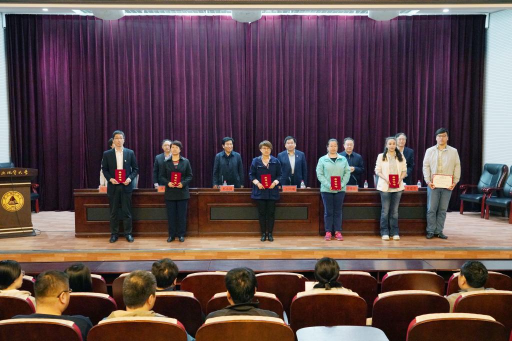 王凤鸣校长宣读了《关于表彰2018年度安全稳定工作先进集体和先进个人的决定》。水资源与环境学院、外国语学院、会计学院、学生工作处、社会科学部、数理教学部、博物馆、实验实践教学中心、现代教育技术中心、后勤集团等10个单位被评为安全稳定工作先进单位;杨旭辉、高珊珊、郝新丽、杨悦、许平彩、常连玺、李强、李明杰、易铁山、赵世美、张帆、胡成祥、张大海、李杰等14名同志被授予安全稳定工作先进个人。学生工作处常连玺、水资源与环境学院陈康分别代表先进单位,外国语学院杨旭辉、后勤集团李明杰作为先进个人代表,依次分享了开展安全稳定工作的经验。