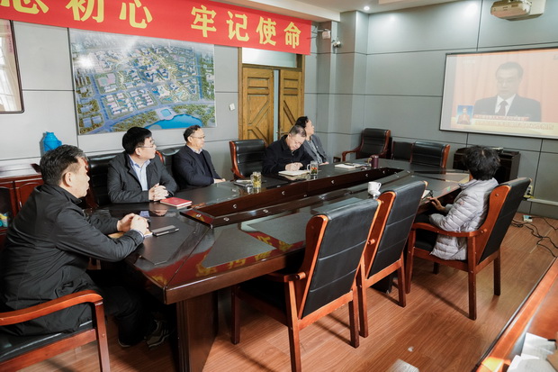 校党委理论学习中心组在三楼会议室收看开幕会直播,听取李克强总理政府工作报告(摄影:耿凯)