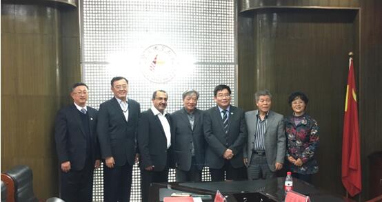 图4 中国驻卡塔尔前大使高有祯先生携卡塔尔知名企业家来校洽谈玄武岩纤维材料合作事宜