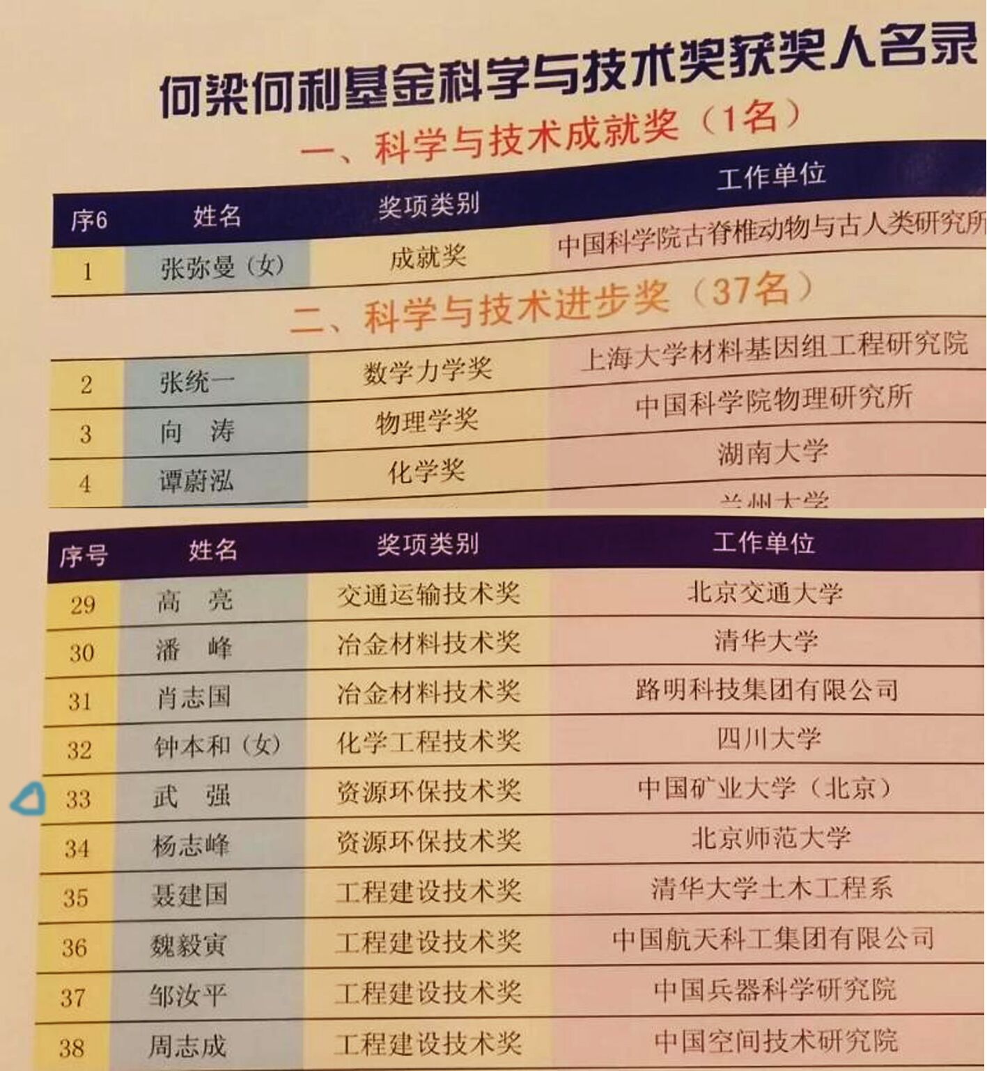 何梁何利基金获奖名单