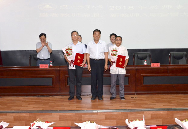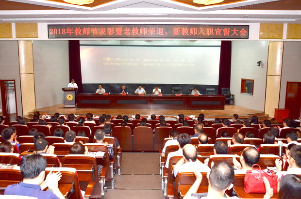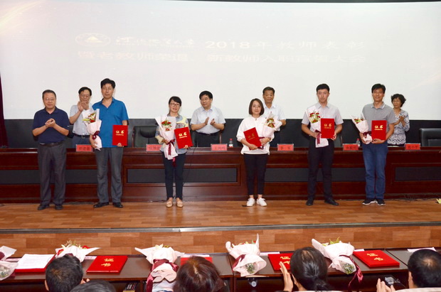 2018年教师表彰暨老教师荣退、新教师入职宣誓大会在春秋讲堂举行