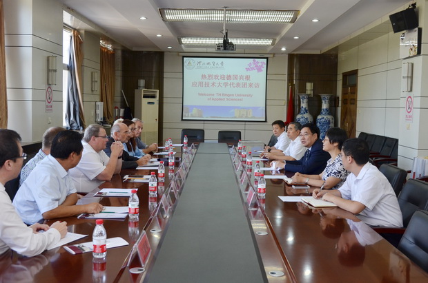 9月6日上午,以德国宾根应用技术大学校长克劳斯.贝克为团长,德国美因茨宾根县大区行政负责人克劳斯.希克及其夫人古德.希克、德国尼尔斯泰因市市长托马斯.君特、尼尔斯泰因市副市长约翰.斯密特、德国河北商会会长房心如、德奥集团董事长徐自发、德国莱茵之父集团顾问翻译王蒙蒙等为成员的德国教育代表团一行8人访问best365。校长王凤鸣与代表团在主楼四楼会议室进行了友好务实的会谈。国际交流合作处长廖亦斌主持会议。