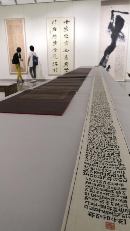 随后,韩国著名书画家余泰明教授在开幕式中现场进行艺术创作表演,为本次活动的成功举办增添了生机活力,留下珍贵的墨宝。在开幕式结束后,嘉宾一同现场参观了此次艺术交流展。