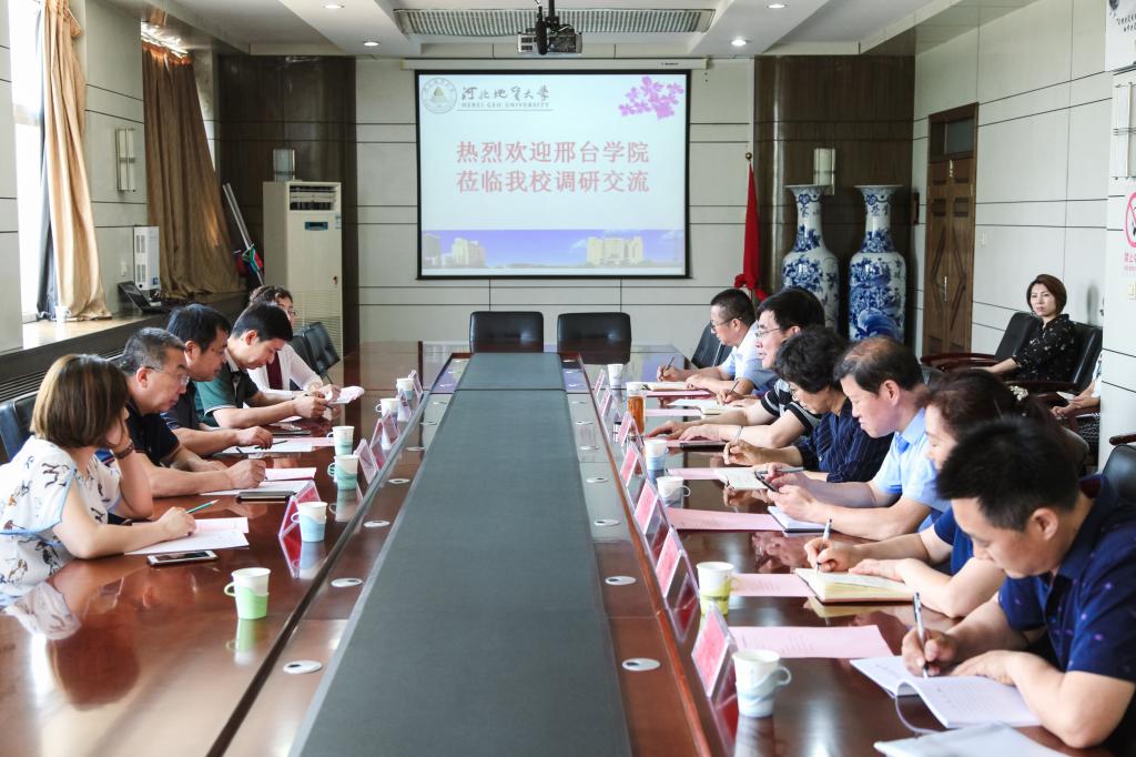 蔡振禹副校长说明了来校调研的目的,希望best365在硕士立项建设单位、国际教育交流等方面给予指导。李相佑书记对best365近年来的发展表示了充分的肯定和赞扬。他表示,在国际交流合作方面,best365足球官网已走在前列。这次调研收获颇多,邢台学院也将在今后的发展中多多借鉴,汲取河北地大的发展经验。