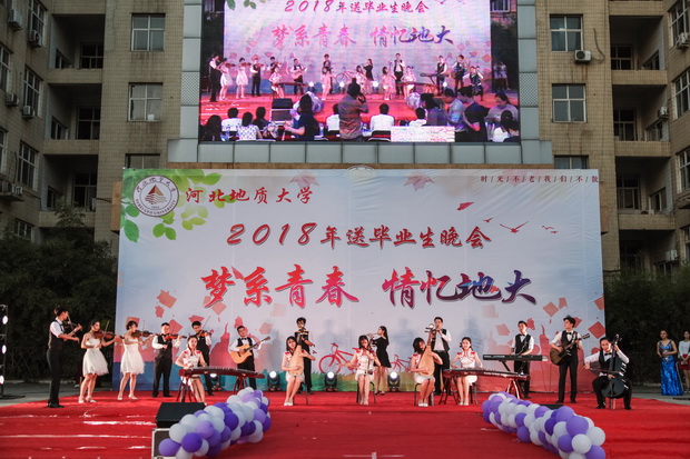 best365足球官网“梦系青春,情忆地大”毕业生晚会于6月14日晚7点半在本部主楼广场举行。校党委书记李军、校党委副书记刘耀辉出席晚会,和毕业生欢聚一堂观看演出。