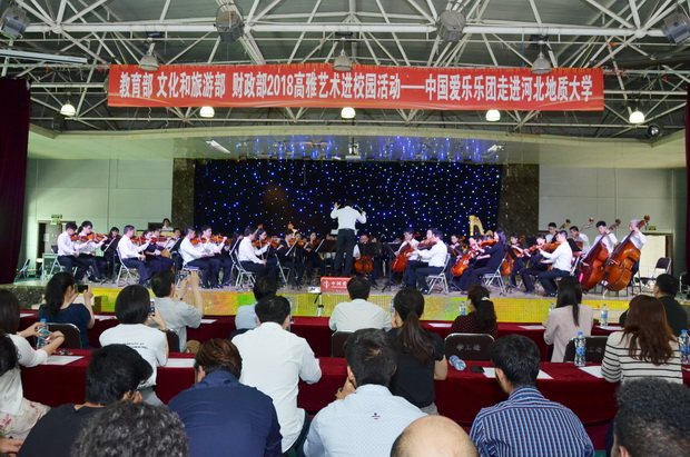 5月9日下午,由教育部、文化和旅游部、财政部联合举办的“高雅艺术进校园”活动在best365足球官网校本部隆重举行,来自中国爱乐乐团的音乐艺术家们为best365师生倾情奉献了一场视听盛宴。best365党委书记李军、党委副书记刘耀辉,中国爱乐乐团党委书记、常务副团长刘军,财务总监朱立敏与包括留学生在内的数百名师生共同观看了演出。