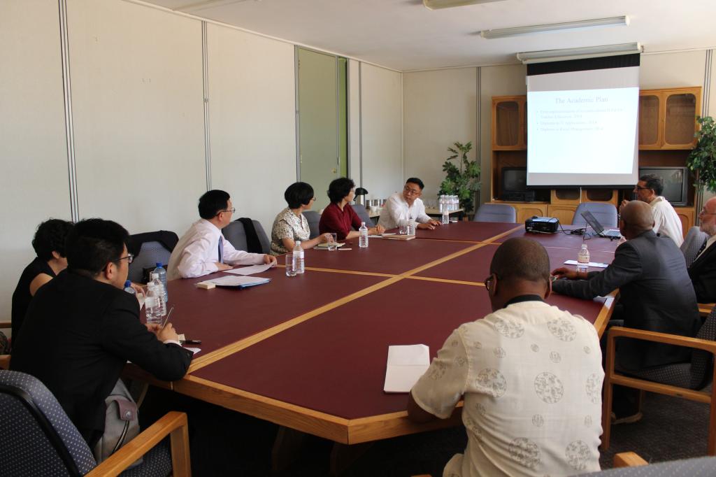 在访问南非国立索尔普拉杰大学时,代表团与尤努斯.巴利姆(Yunus Ballim)校长会晤,双方就合作交流的意愿和想法进行了充分地表达,为双方进一步合作交流奠定了有效的基础。