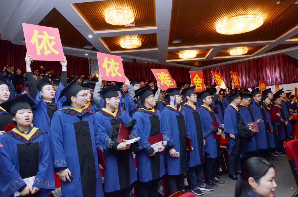 典礼现场,毕业生依依难舍母校情