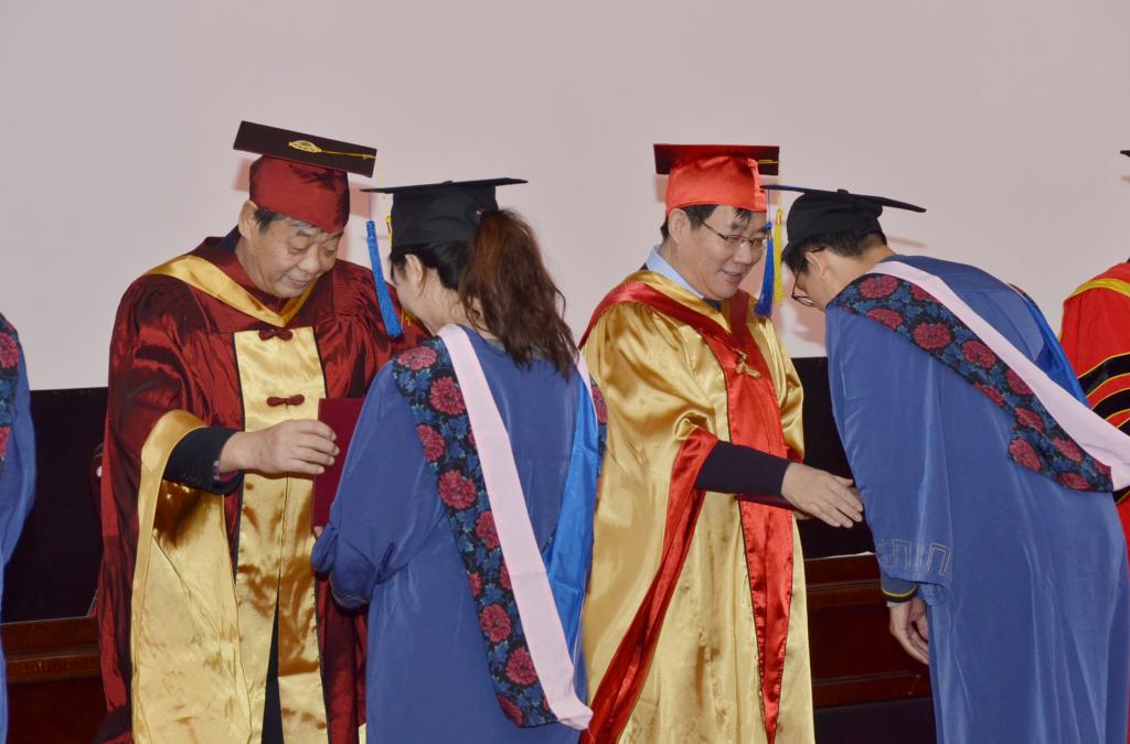 校领导为同学们颁发学位证书
