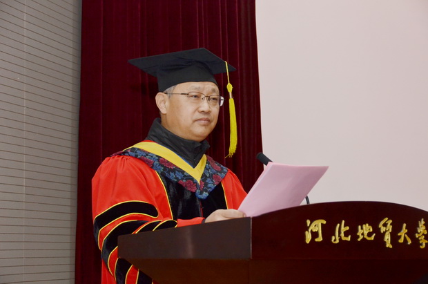 典礼在庄严的国歌声中拉开帷幕。王凤鸣校长在致辞中首先对各位研究生通过勤奋学习、刻苦钻研顺利毕业表示祝贺,对为研究生培养辛勤工作的导师、教职员工、家长们和社会各界人士表示感谢。他指出:同学们在学校就读的这几年,见证了伟大祖国革故鼎新,开拓进取的壮丽场景,也亲历了学校事业在改革创新中不断迈上新台阶。在毕业生即将迈入社会之际,他希望同学们做有理想有抱负的人,学而不辍,追求卓越;做勤于思、敏于行的人,勇于实践,善于创新;做有胸怀有境界的人,积极向上,懂得生活。他深情地对同学们说,“达观博物”是学校深厚的积累,是学校气质的表现,我们要将校训精神凝聚于心,做达观博物之人。