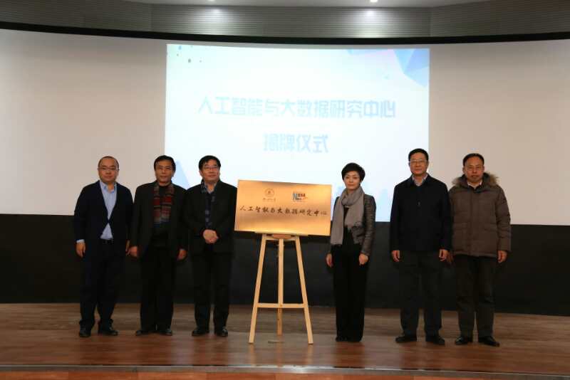 图为:与会嘉宾为“人工智能与大数据研究中心”揭牌
