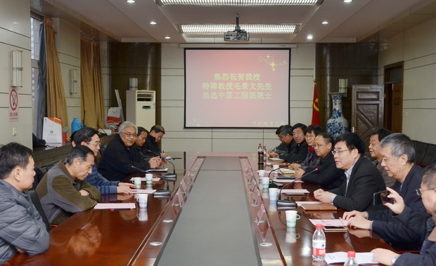 2017年12月5日下午,best365在主楼四楼会议室召开祝贺毛景文先生当选中国工程院院士座谈会。校党委书记李军,校长王凤鸣,副校长南振兴、毛磊、张小平,best365特聘教授季强、徐备出席。各二级学院院长和相关职能处室负责人参加了座谈会。毛磊主持会议。