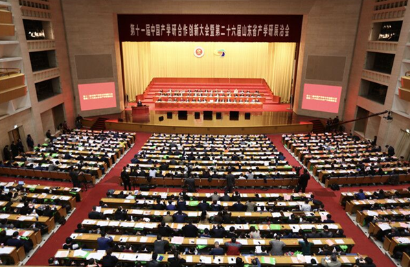 本届会议以党的十九大精神为指导,围绕“产学研协同创新,迈向新时代新征程”的主题,就产学研合作助推新旧动能转换、军民融合、“一带一路”建设、创新设计、智能制造、校企合作、健康中国等专题开展交流研讨和项目对接。