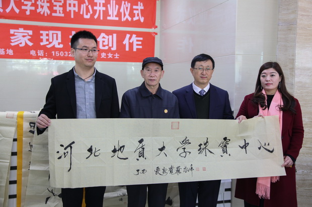 到场领导和嘉宾共同上台为珠宝产学研基地开业剪彩,并参观体验了鉴定检测、宝玉石知识讲座、市场消费等丰富多彩的文化活动。著名书画家爱新觉罗.启年先生率多名河北书画家为珠宝产学研基地开业仪式现场创作,并捐赠了全部创作作品。