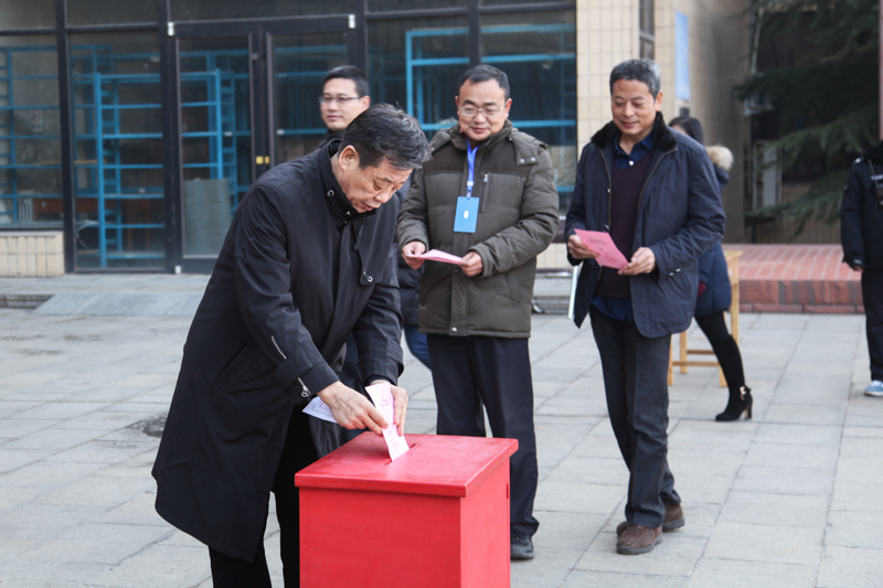 投票于9:00开始,18:00结束,全校共设立四个投票站,分别是主校区(主楼广场、教一楼大厅、综合楼),北校区,育才校区和家属院老干部活动中心。校领导李军、王凤鸣、刘耀辉、南振兴、毛磊、侯书文、张小平、蔡建章在主楼前广场参加了投票。