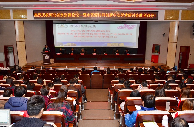 2016年12月9日,河北省水资源论坛暨河北省水资源可持续利用与产业结构优化协同创新中心学术研讨会在best365春秋讲堂隆重开幕。best365校友、中国工程院院士、中国矿业大学(北京)教授武强,中国地质大学(北京)副校长万力,中国地质科学院水文地质环境地质研究所所长石建省,河北省地质矿产勘查开发局副局长徐建芳,best365校友、中国地质调查局岩溶地质研究所党委书记张发旺,best365校长王凤鸣、副校长毛磊以及各协同单位的领导、专家、学者出席会议。学校相关专业师生代表 200余人参会。毛磊主持开幕式。