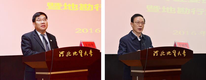 姜建军作了题为“国土资源‘三深一土’科技创新发展战略与人才发展”专题报告,从人类起源开始,介绍了几千年人类文明发展史,指出人类科技创新发展需要科技人才,需要专业性的领军人物,并就国土资源“三深一土”的土地资源创新理论在指导找矿等领域的科技成果进行了深入讲解。