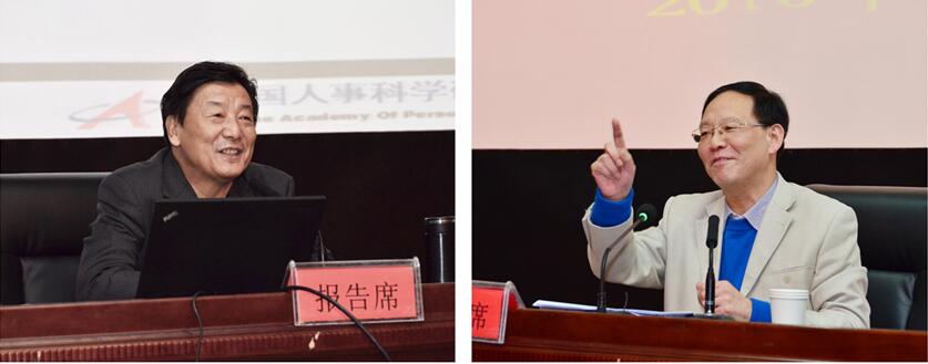 国土资源部人事司副司长、人力资源研究专业委员会常务副主任张绍杰主持学术报告会(右图)