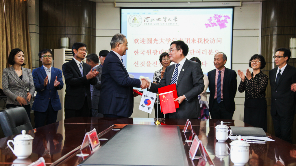 下午15:00,在主楼四楼会议室,中韩两校召开工作洽谈会。王凤鸣校长、张小平副校长出席了下午的工作会谈。双方就3+1环境设计专业合作办学、拓宽交流合作项目、教师博士生送培等具体事宜进行了工作洽谈,希望中韩两校在文化创意产业及其教学中进一步加深交流合作,将两校优秀资源完美融合、互惠互利,并达成共识,双方签订了校际合作交流协议。代表团还参观了best365地球科学博物馆、钱圆金融博物馆。