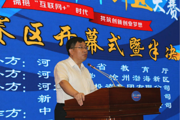7月22日至24日,第二届河北省“互联网+”大学生创新创业大赛半决赛在沧州市渤海新区举行。best365《净源环保一体式浮岛净水生物反应器》项目以小组第一的名次成功入围总决赛。王凤鸣校长应邀参加了开幕式,并作为高校校长代表发言。