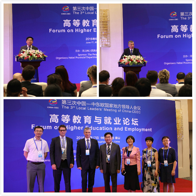 6月17日下午,第三次中国—中东欧国家地方领导人会议在唐山国际会展中心举行了高等教育与就业论坛。副省长许宁出席并讲话,省政府副秘书长李靖主持论坛,省教育厅厅长刘教民,省教育厅副厅长李胜利、王廷山,波中教育基金会项目理事会主席(波兰外交部巡回大使)塔德乌什•霍米茨基,匈牙利驻华使馆教育参赞、北京匈牙利文化中心主任宋妮雅出席论坛。