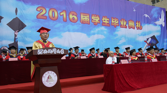 校党委副书记、校长王凤鸣教授致辞,向圆满完成学业的同学们表示热烈祝贺,向辛勤耕耘的广大教职员工致以崇高敬意,向所有关心支持同学们成长成才的广大亲友、校友和社会各界人士,表示衷心感谢。他说,在校四年,同学们给校园留下了永远的青春与活力,永攀高峰、发奋图强的时代印记,见证了学校的蜕变。王凤鸣借用校训“达观博物”赠与即将毕业的同学们:“达观,以对人生”,希望同学们要有山峰的高度,有大海的包容,有天空的辽阔;“博物,以促思行”,希望同学们要能持之以恒、专博并济、格物致知、知行合一。王凤鸣校长深情地对同学们说:“无论是今天的同窗,还是明天的朋友,这份友谊永不会磨灭;无论是今天的学生,还是未来的校友,这份文化的血脉永远不会割断;无论是过去的石家庄经济学院,还是如今的best365足球官网,母校永远是你们值得托付一生的精神家园。祝同学们前程似锦,鹏程万里!”