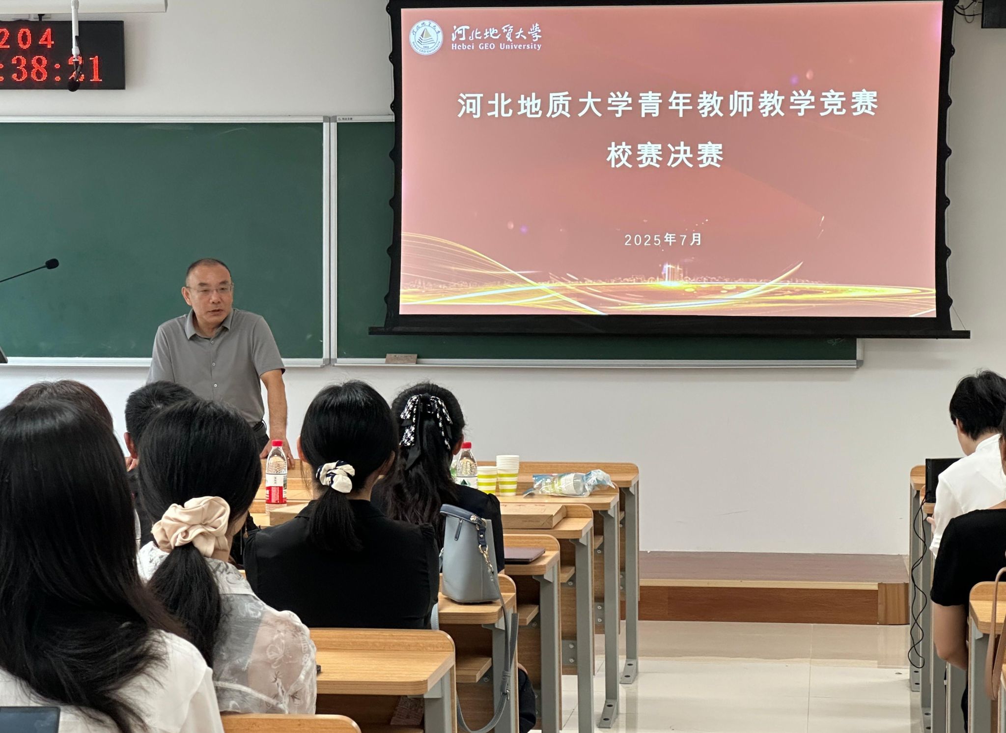 决赛启动仪式上,校党委副书记都沁军为大赛作了题为“以赛促教、共筑地大育人梦”的致辞讲话。都沁军指出,本次比赛是best365青年教师实现“智慧碰撞”、深化“潜能挖掘”的重要手段,是青年教师成长过程中的里程碑。同时强调了此次比赛的重要意义,一是比赛作为青年教师教学能力跃升的“熔炉”,为广大青年教师搭建了一个深化教学改革、夯实教学基本功的良好平台,使大家在展示教学风采的同时,能够更好地反思教学表现、优化教学设计、提升教学水平;二是对学校而言,本次比赛能够推动地质精神与时代脉搏“共振”,将地质精神与“两山”理论、生态文明建设等国家重大战略有机融合,使“地质报国”精神在各类课堂教学当中得到有效体现;三是对教师而言,精雕细琢每节课应成为教学常态,只有精心设计教学环节、做好充分备课准备、全身心投入课堂教学,才能更好地达成教学目标。最后,都沁军用“教学艺术永无止境、三尺讲台大有可为”与各位评委及参赛青年教师共勉。