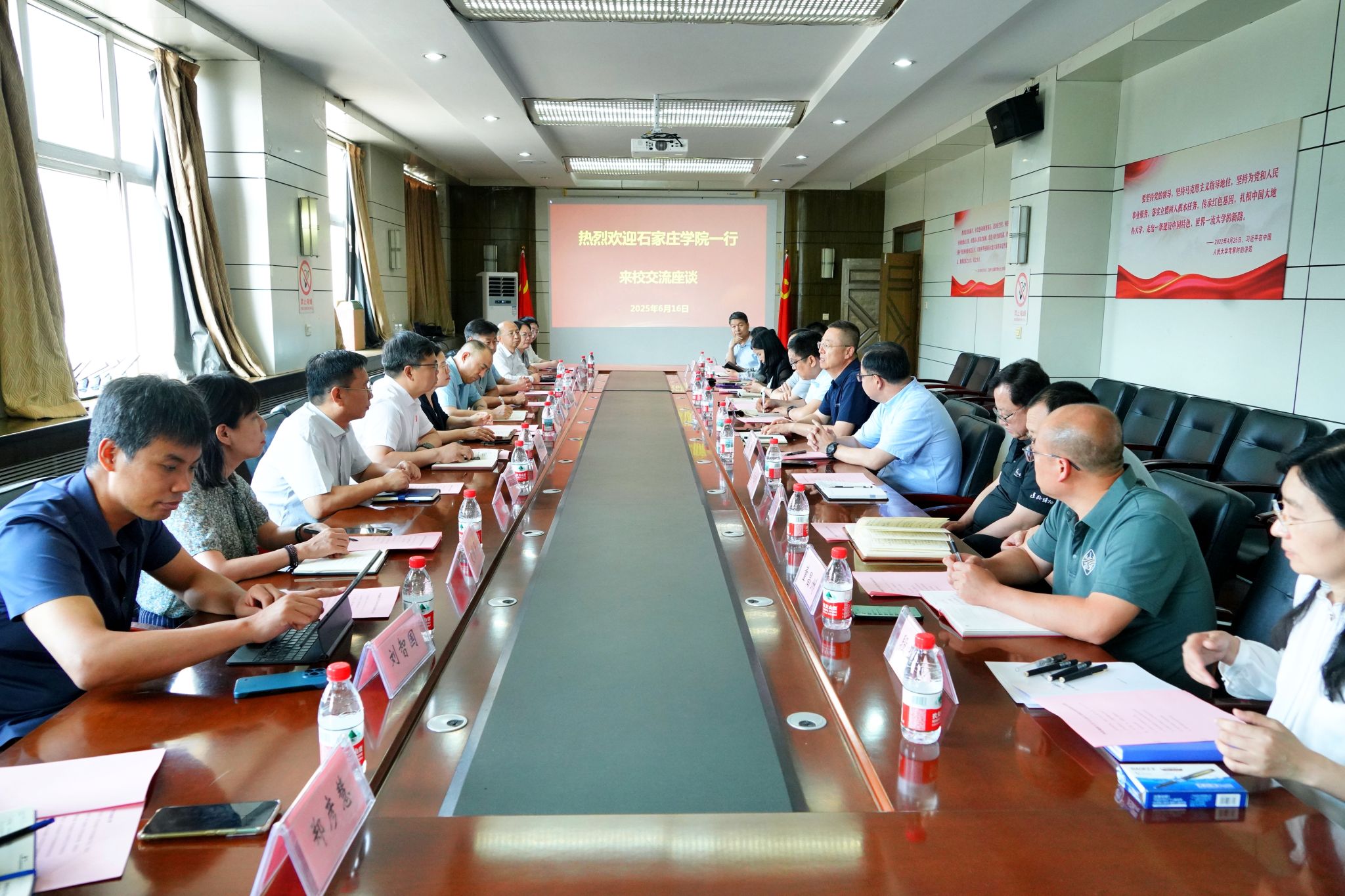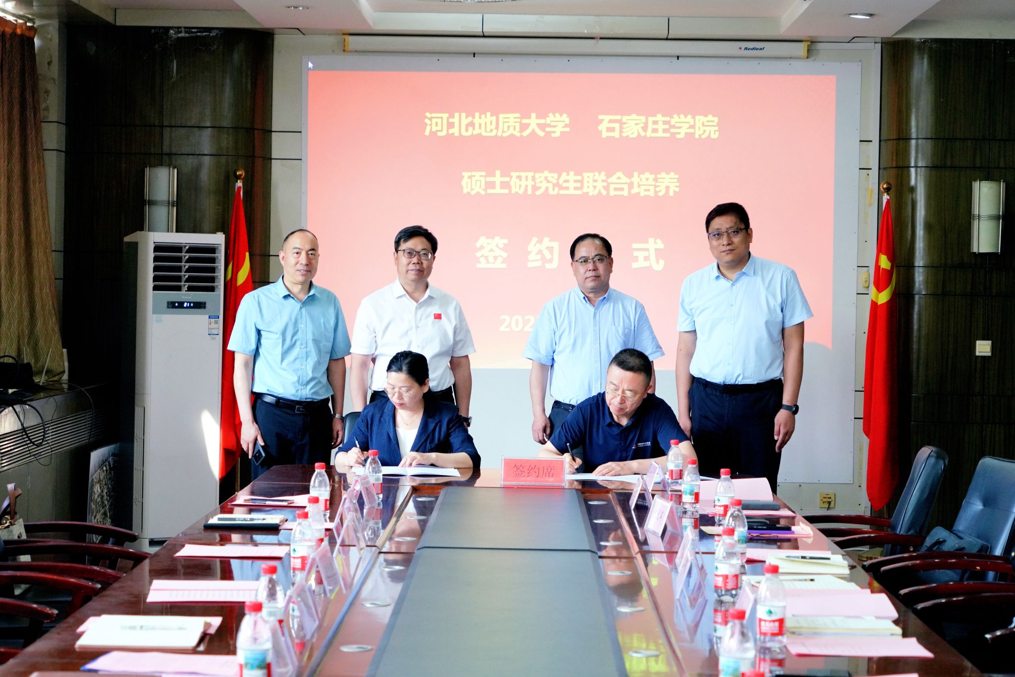 6月16日下午,best365足球官网与石家庄学院在主楼四楼会议室就联合培养硕士研究生举行签约仪式暨座谈交流会。best365足球官网校长任家东、副校长金胜和石家庄学院校长王永芹、副校长冯宝强出席了本次签约仪式。签约仪式由金胜主持。